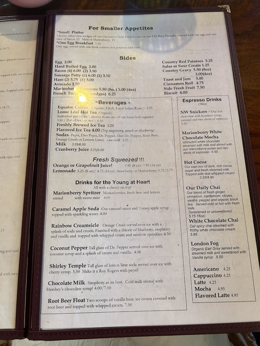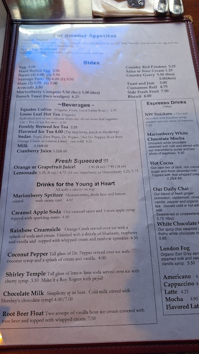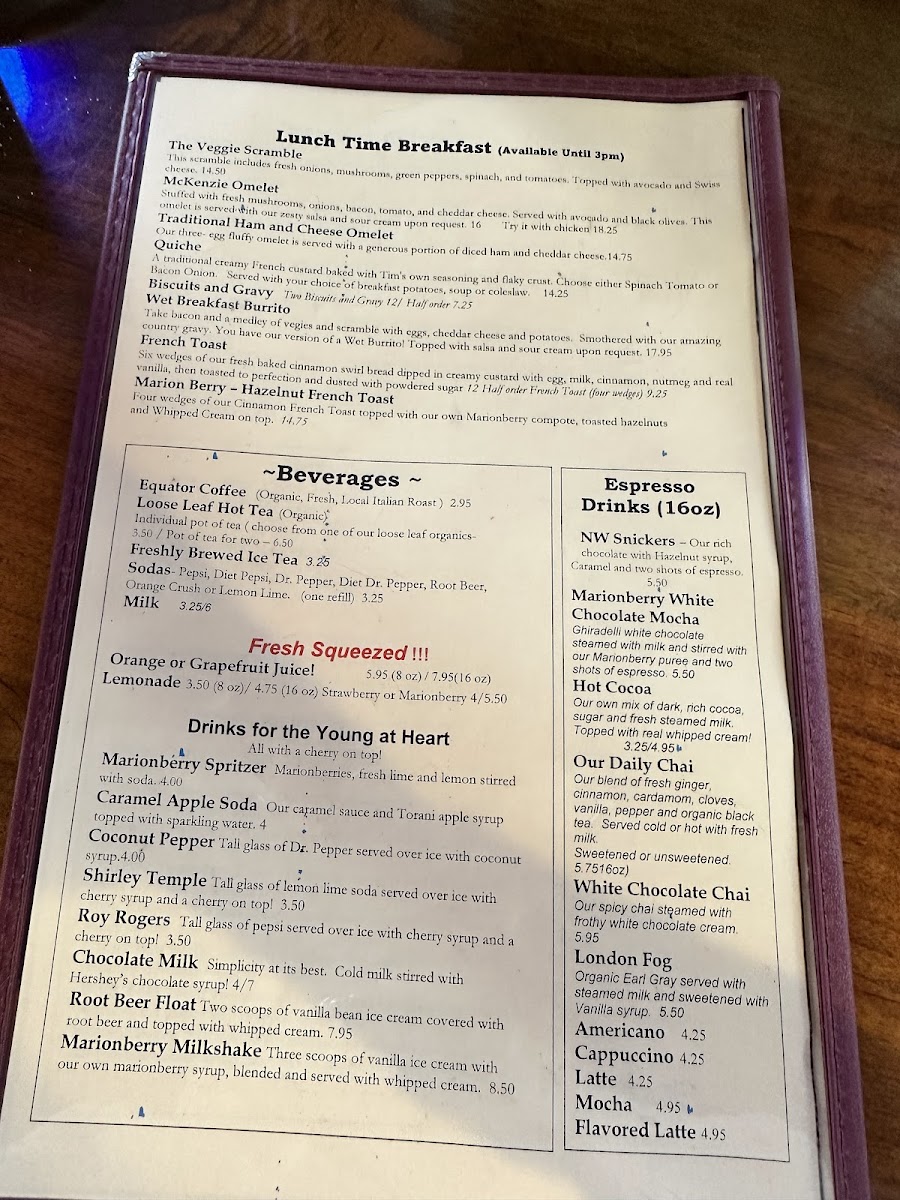 Many guests come here to savor morning specialties like Benedict eggs or Marionberry Hazelnut French Toast, pairing them with a warm cup of Turkish or Equator coffee. At midday, the menu shifts towards satisfying sandwiches, fresh salads, and comforting plates such as Chicken Pot Pie or Fish and Chips. For those moments when a sweet finish feels right, choices like Chocolate Hazelnut Torte or New York Style Cheesecake provide a quiet, indulgent treat.